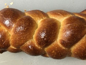 This bread has a light texture inside, with a deep golden crust. Can be served as pictured in a long braid, or baked in a loaf pan for a taller bread.